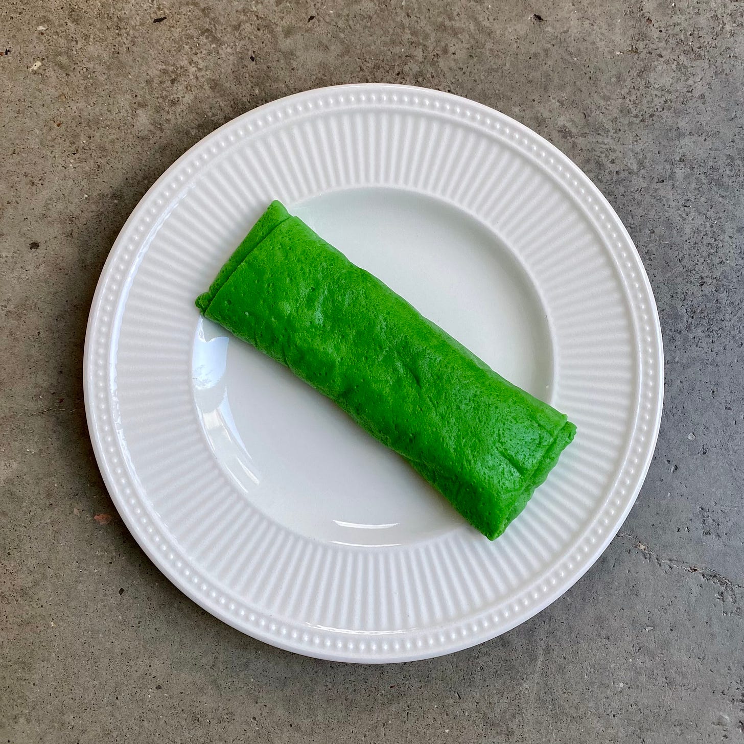 There’s a long list of pastries I unjustifiably avoid because they have coconut. (See how appalled I was when a bakery passed off a strong coconut croissaint as a plain one.) The offensive part to me is the chewy texture, the way it makes your mouth feel dry, and this flavour that is nutty, floral, and earthy but none fully. I’m fully on team coconut-belongs-in-savory-applications but to my chagrin, many Indonesian desserts utilize coconut. Understandably then, I wasn’t too eager to try the dadar gulung but the bright green pandan colour called my name.